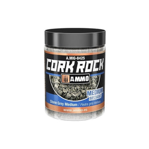 High-quality tinted cork granulate product in grey colour to represent stones and rubble on natural settings such as steppes, prairies, and fields. Available in three different sizes, or a mix of the three sizes to better suit each modeller´s needs. Ready to be used straight from the package, crushed cork pieces can be fixed using all kind of glues, including both acrylic and cyanoacrylate adhesives. Reference: A.MIG-8425 Acrylic Texture. 100ml jar.
