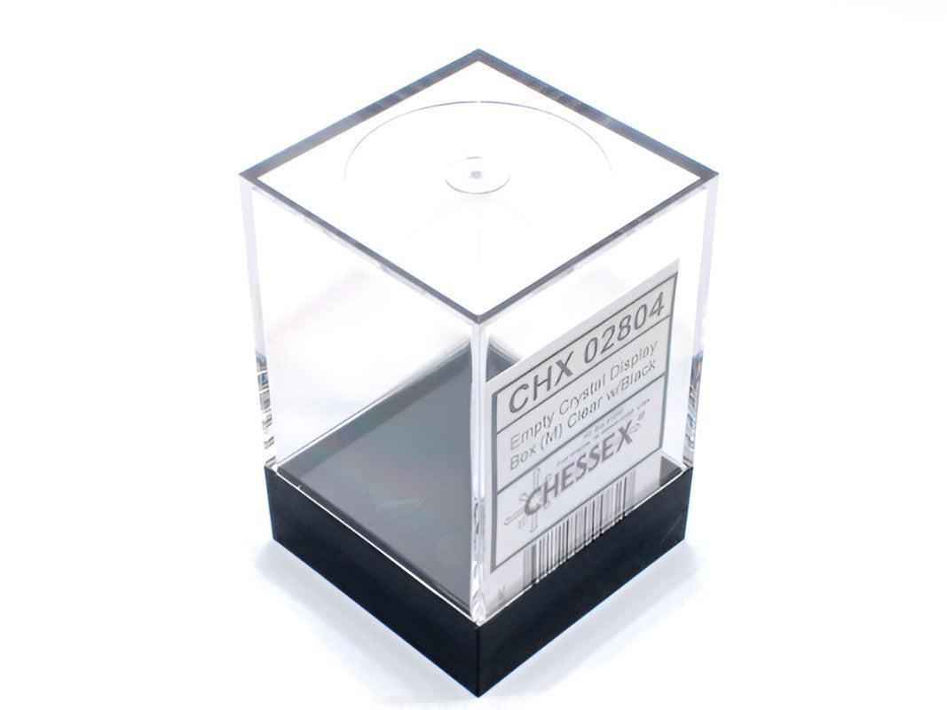 This empty crystal display box is perfect for showing off your prized miniature and/or dice. This case is commonly used to store 12mm d6 dice block sets (36 dice) from Chessex. This medium-sized box features a clear body for easy visibility of contents and a black snap-on lid for secure closure. A practical choice for gamers and collectors who want to keep their dice sets safe, organized, and easily displayed.
