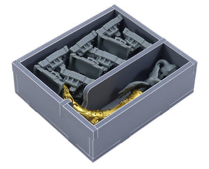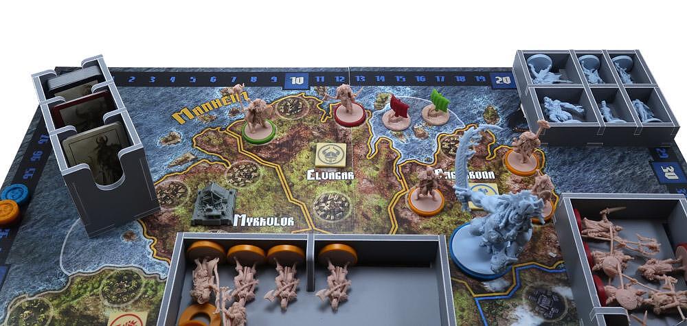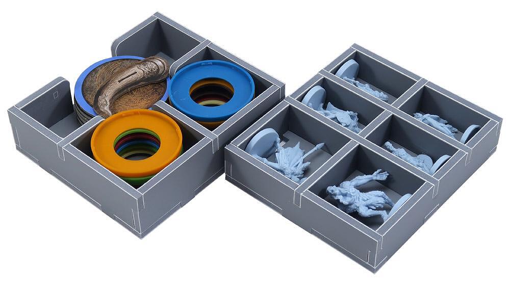 Insert compatible with Blood Rage®, including the Mystics of Midgard®, Gods of Asgard®, 5th Player Expansion®, and the Promos Box® expansions. The design provides both efficient storage and improved game play. Many of the trays can be utilised during the game, and they greatly aid set-up and clear-away times. The rules and boards act as a lid on top of the trays.