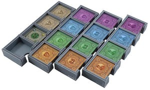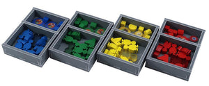 Insert compatible with Rajas of the Ganges®, including the Goodie Boxes 1 & 2 expansions. The design provides both efficient storage and improved game play. Many of the trays can be utilised during the game, and they greatly aid set-up and clear-away times. The rules and boards act as a lid on top of the trays.