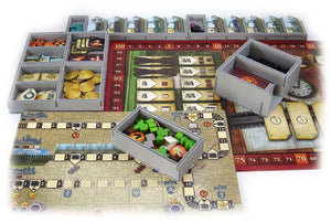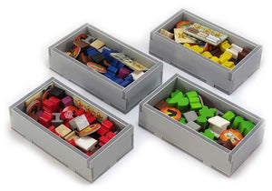 This insert is designed to be compatible with Russian Railroads®, and includes space for the German Railroads® expansion. The design provides both efficient storage and improved game play. Many of the trays can be utilised during the game, and they greatly aid set-up and clear-away times. The boards and player boards act as a lid on top of the trays. All cards can be sleeved.
