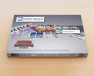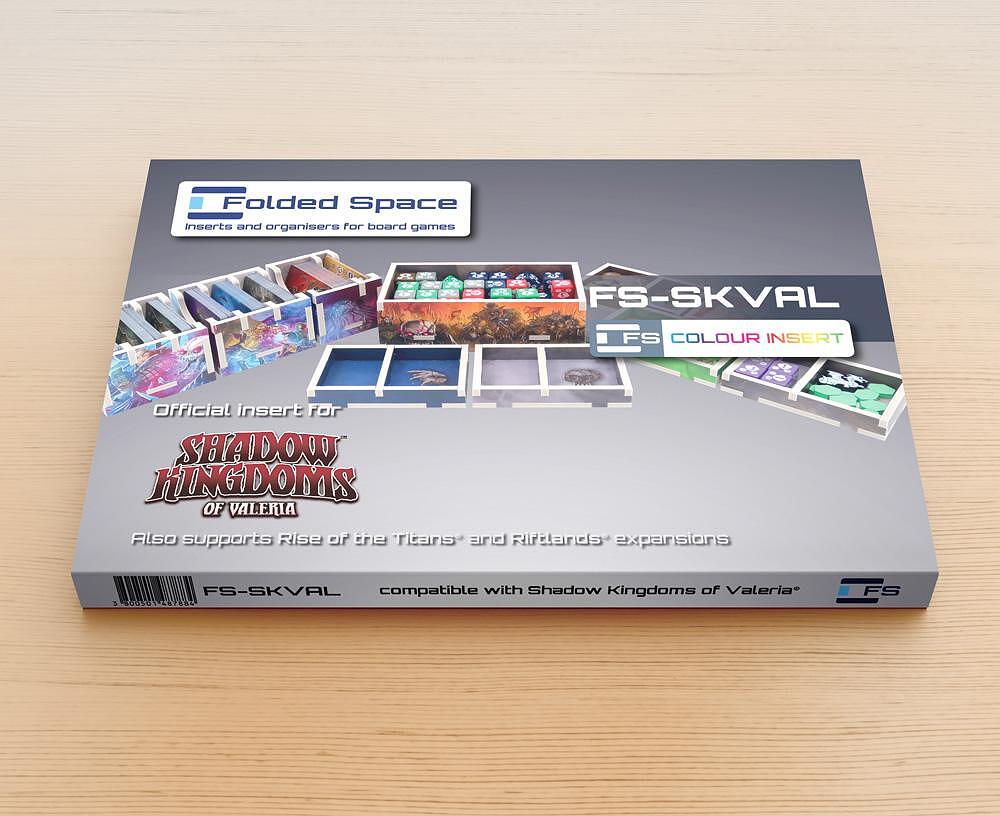 Official full colour insert compatible with Shadow Kingdoms of Valeria®, including space for the Rise of Titans® and Riftlands® expansions. The design provides both efficient storage and improved game play. Many of the trays can be utilised during the game, and they greatly aid set-up and clear-away times. The rules and boards act as a lid on top of the trays.