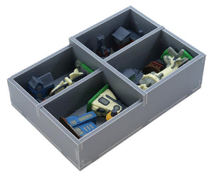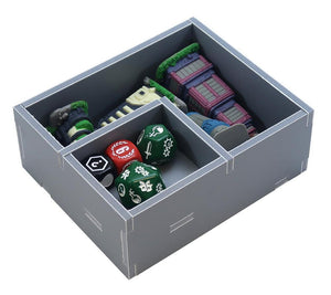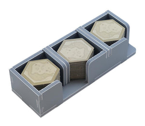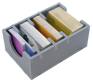 Insert compatible with Tapestry®, including the Plans & Ploys® and Arts & Architecture® expansions. The design provides both efficient storage and improved game play. Many of the trays can be utilised during the game, and they greatly aid set-up and clear-away times. The boards and rule books act as a lid on top of the trays.