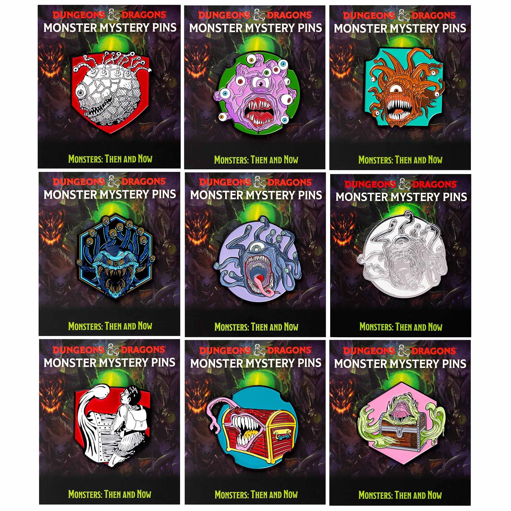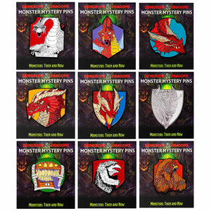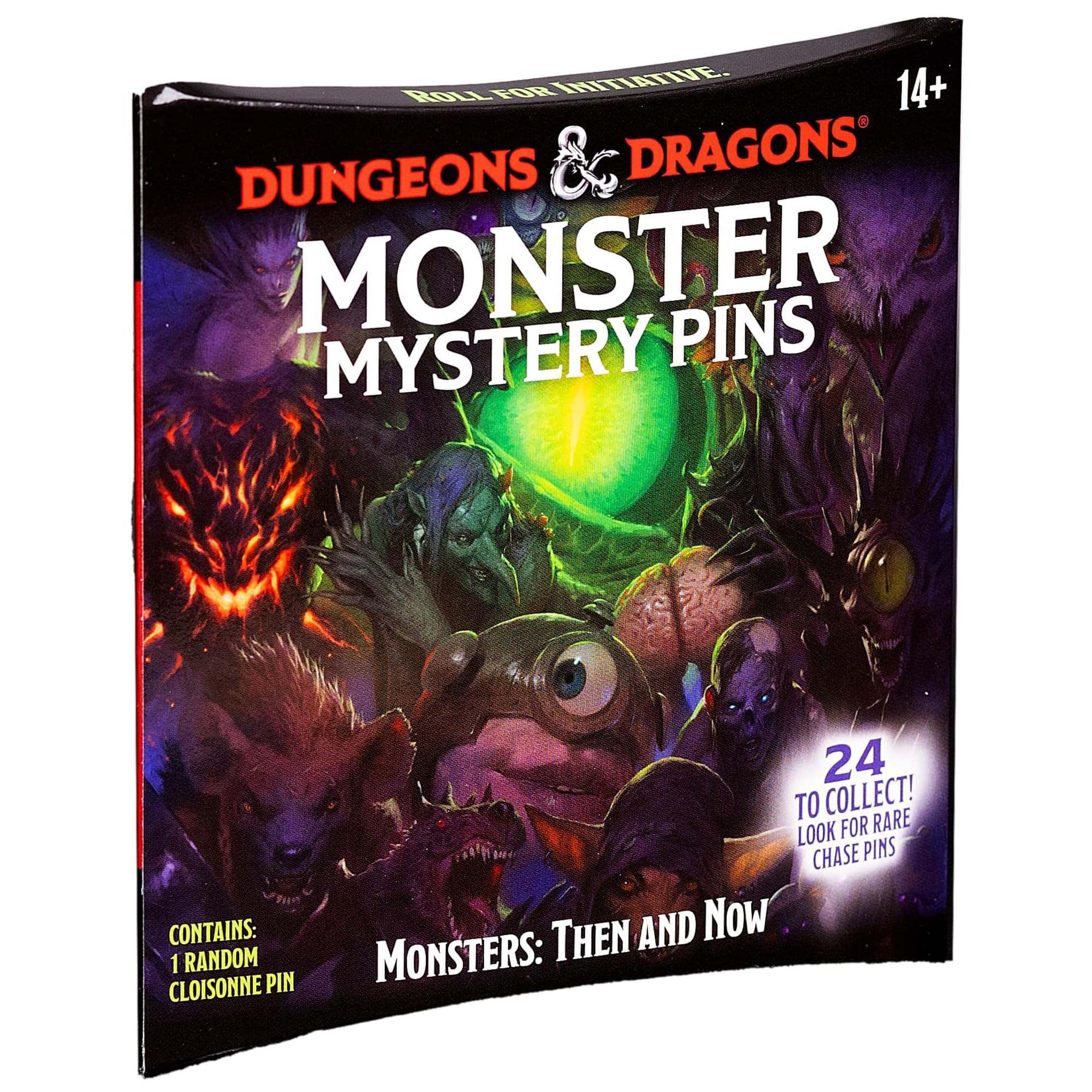 Dive into the rich history of Dungeons & Dragons with the D&D Monster Mystery Pins collection featuring iconic monsters from every edition, spanning 1st through 5th. These collectible pins are packaged in randomized blind bags, adding a thrill to each purchase. res with four sterling silver–plated chase pins creating excitement for collectors and newcomers alike. Each pin captures the evolution of D&D’s beloved monsters, celebrating the game's timeless legacy. The compact pillow box design ensures easy stocking and display for retailers.