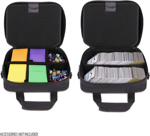 CUSTOMIZABLE INTERIOR STORAGE: Adjustable dividers allow you to create custom interior pockets to store up to 1200 sleeved cards, dice, notebooks, tokens, counters, and more
