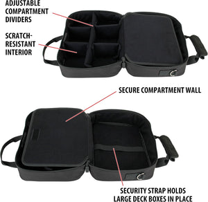 PORTABLE COLLECTION BAG: Roomy interior storage bag holds decks and large card boxes held in place with an elastic security strap allowing you to bring along a collection to every game night
