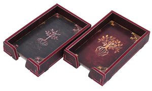 The trays are arranged in up to three layers as shown. All the trays feature a full colour print, inside and out. There is space for all cards to be sleeved with quality sleeves.