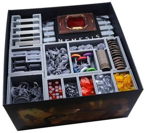 Insert compatible with Nemesis: Lockdown®, and includes space for the Nemesis Lockdown: Stretch Goal content. The design provides both efficient storage and improved game play. The trays can be utilised during the game, and they greatly aid set-up and clear-away times. The rules and boards act as a lid on top of the trays.