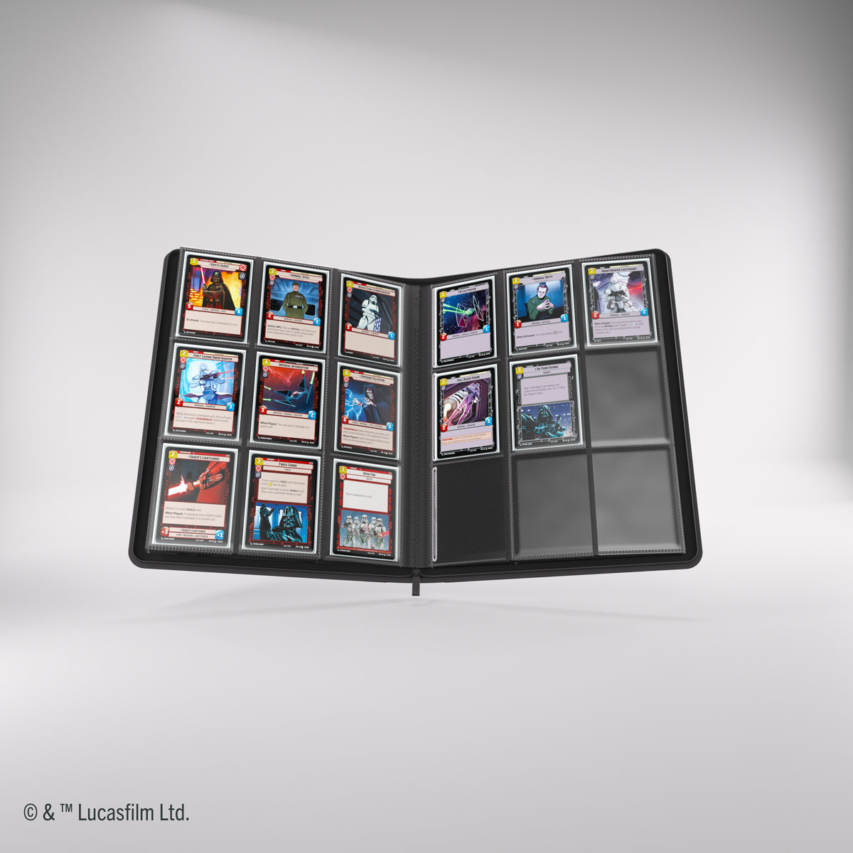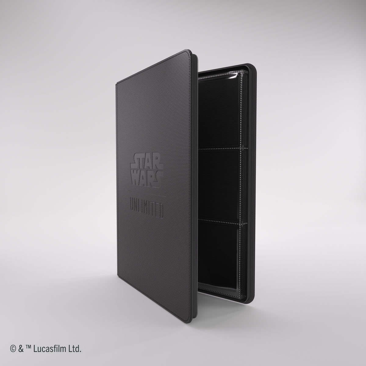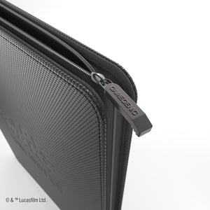 The officially licensed Star Wars™: Unlimited Zip-Up Album is a great way to collect and organize your valuable Star Wars: Unlimited cards. The album is covered with a premium Hexafyber surface and has an elegant hot-stamped Star Wars: Unlimited logo. The inside of the Zip-Up Album is covered with a soft microfiber lining and shows a silver-colored foiled logo. A reinforced, rigid cover adds protection to keep card collections safe. The album contains 20 side-loading pages with 18 side-loading pockets each for a total capacity of 360 double-sleeved cards. A durable zipper closes this album from all sides.