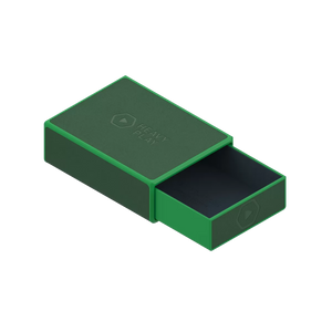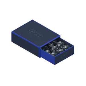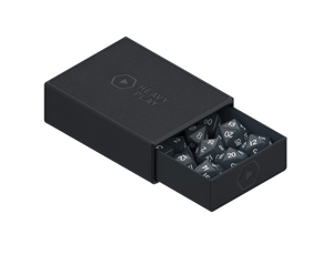 The ultimate dice box. Fits 4x D20 spindowns, a full set of 7x RPG dice, and a bunch of extra D6's or tokens. Magnetic tray slides out and pops on top for easy dice access during gameplay. Durable vegan leather exterior. Soft microfiber lining to dampen rattling.