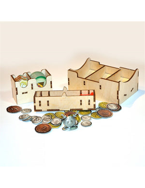 7 Wonders Duel is one of the best 2 player games currently on the market. With its Pantheon expansion it offers a great challenge for those two players. Our inserts holds as well as the base game as the two expansion in one box. Everything neatly stored and sorted, so setup is quick and easy. The coin tray has the value engraved and also hold the metal coins if you own them. Fits FFG sleeved cards and the box will close flush. This is a third-party accessory designed by Laserox. All product names are trademarks of their respective owners, which are in no way associated or affiliated with Laserox.