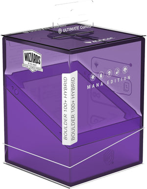 Ultimate Guard's Boulder 100+ Hybrid combines the completely transparent top of the Boulder Clear with a soft-touch base in the style of the original Boulder. The officially licensed MTG deck box is easy to open, but offers reliable protection for your cards thanks to its sturdy case and secure closure. The Boulder 100+ Hybrid holds up to 100 double-sleeved cards and is suitable for all Magic: The Gathering formats, such as Commander (EDH), Standard, or Modern.