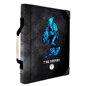 • Textured leatherette cover features red foil Fire Warrior, T’au Empire symbol, and faction emblems, with a spot UV Fire Warrior on the interior