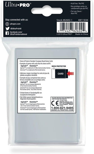 Ultra clear, archival-grade sleeves for board game cards with Ultra PRO's hologram quality seal. Protects and extends the life of board game cards. 50-count packs. Fits games such as Agricola and Dominion.
