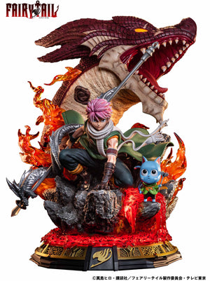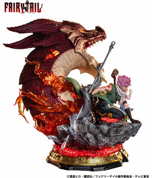 "Fairy Tail" fans will love this massive display statue, with Natsu Dragneel and Happy posing bravely in front of the enraged dragon Igneel! The detail is incredible -- check out the varied textures of Igneel's skin, the perfectly sculpted folds and wrinkles in Natsu's clothing, and Happy's resolute expression. Made of polyresin to capture every detail to perfection, this super-sized statue will command attention no matter where you choose to display it