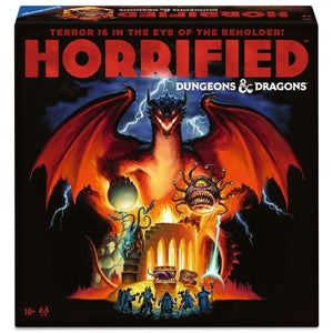Finally, the iconic monsters of Dungeons & Dragons meet the award-winning Horrified board game. Cooperate with your friends to complete unique challenges inspired by 4 iconic D&D monsters Beholder, Displacer Beast, Mimic, and Red Dragon—Dodge attacks and protect adventurers. May the d20 roll in your favor! Compatible with Horrified: Greek Monsters and World of Monsters.