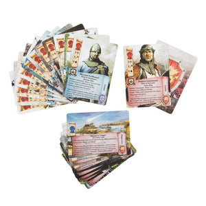 Every card in the game is inspired by a real person or event from the time. With a focus on quick, tactical play and a thematic re-imagining of the events of the time, there is no deck building required; each player simply grabs their deck and shuffles, then play begins.