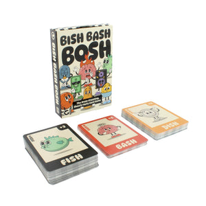 A speedy, card-shedding game that's fast, loud, and fun! Play the right card at the right time… quickly! An ISH card must be followed by an ASH card, and an ASH must be followed by an OSH card. Make a mistake and you'll pay the price by picking up more cards! First to get rid of their cards wins. Contents: 108 cards + rules. Age 8+. 3+ players.
