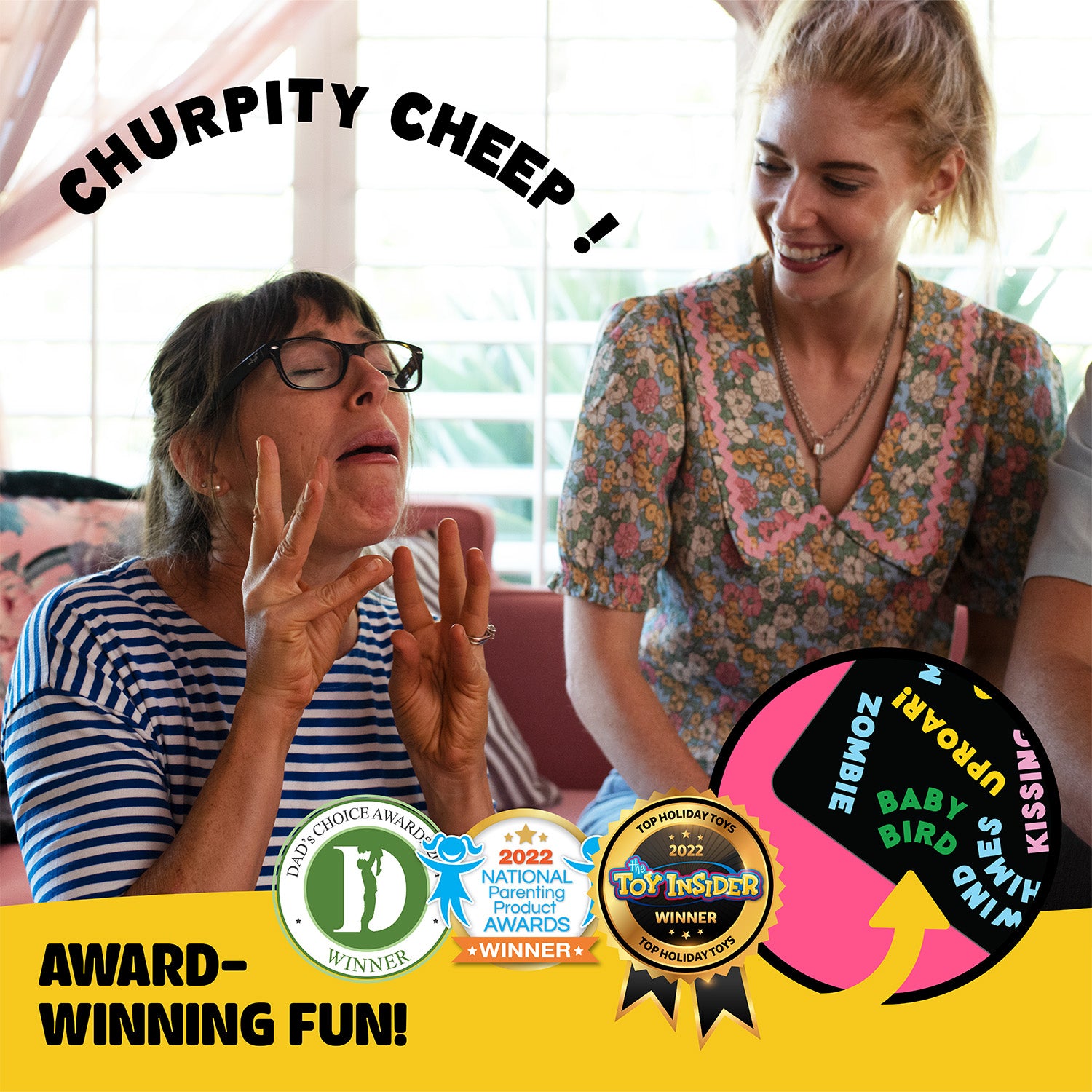 Easy to use. Take two cards, discover the only matching pair of words and be the first to let the answer out. Put on your BWEEEOEW NOWNOW BWOW guitar solo, your WHOOSH BANG firework, your BUCKCAUUUK? Confused Chicken