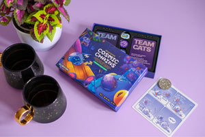 Cosmic Chains is a tactical dueling card game where cats and robots fight for the best internet connection for humanity.