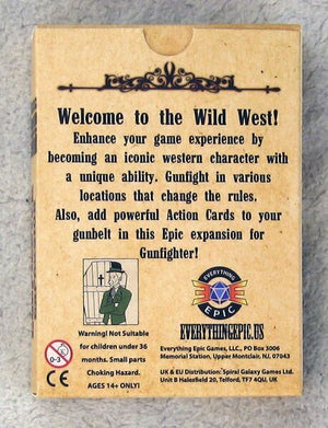 Enhance your game experience by becoming an iconic western character with a unique ability. Gunfight in various locations that change the rules. Also, bring powerful Action Cards to your gunbelt in this Epic expansion for Gunfighter!