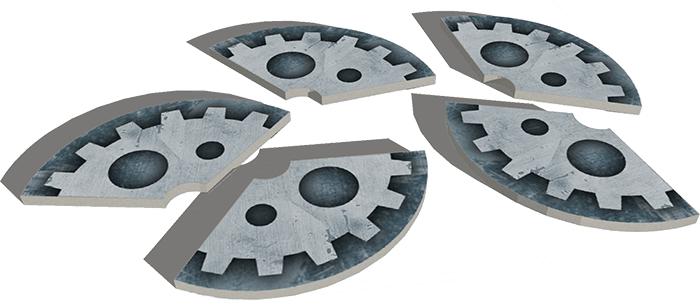 Each match is composed of several rounds where the mechanical warriors fight for the right to remain in contention for the final showdown. In each round, the players secretly choose a card and place it face-down in front of them. They then simultaneously reveal the cards, and the ability of each card is resolved. Whatever cards remain in play are then added to each player's lineup.