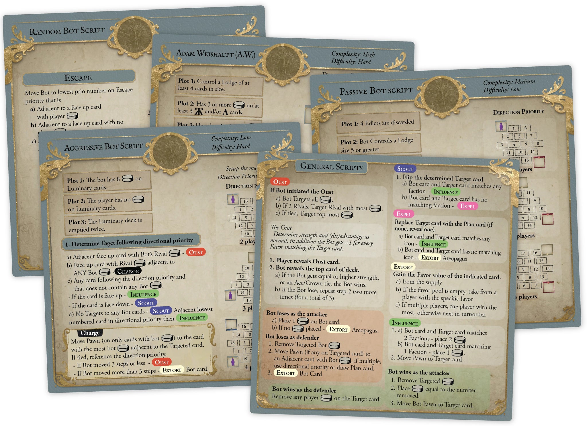Pax Illuminaten is a compact yet deeply strategic game where players embody members of the Bavarian Illuminati. Build influence networks on a map of 18th-century luminaries, pursue changing victory plots, negotiate alliances and bluff to outmaneuver rivals. Each play-through offers unique, high-interaction gameplay in a small box.