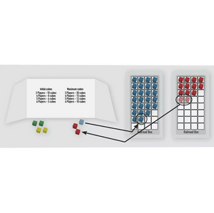 Players are railroad pioneers in this easy family game, building railroads across France and Germany. Each desires to maximize their gains from these early railroads, seeking to be the most invested in the most lucrative railroads. Very simple rules are used, but the ability to bluff and misdirect offers a challenging game experience. No two games play the same, and each game takes about 30 minutes.