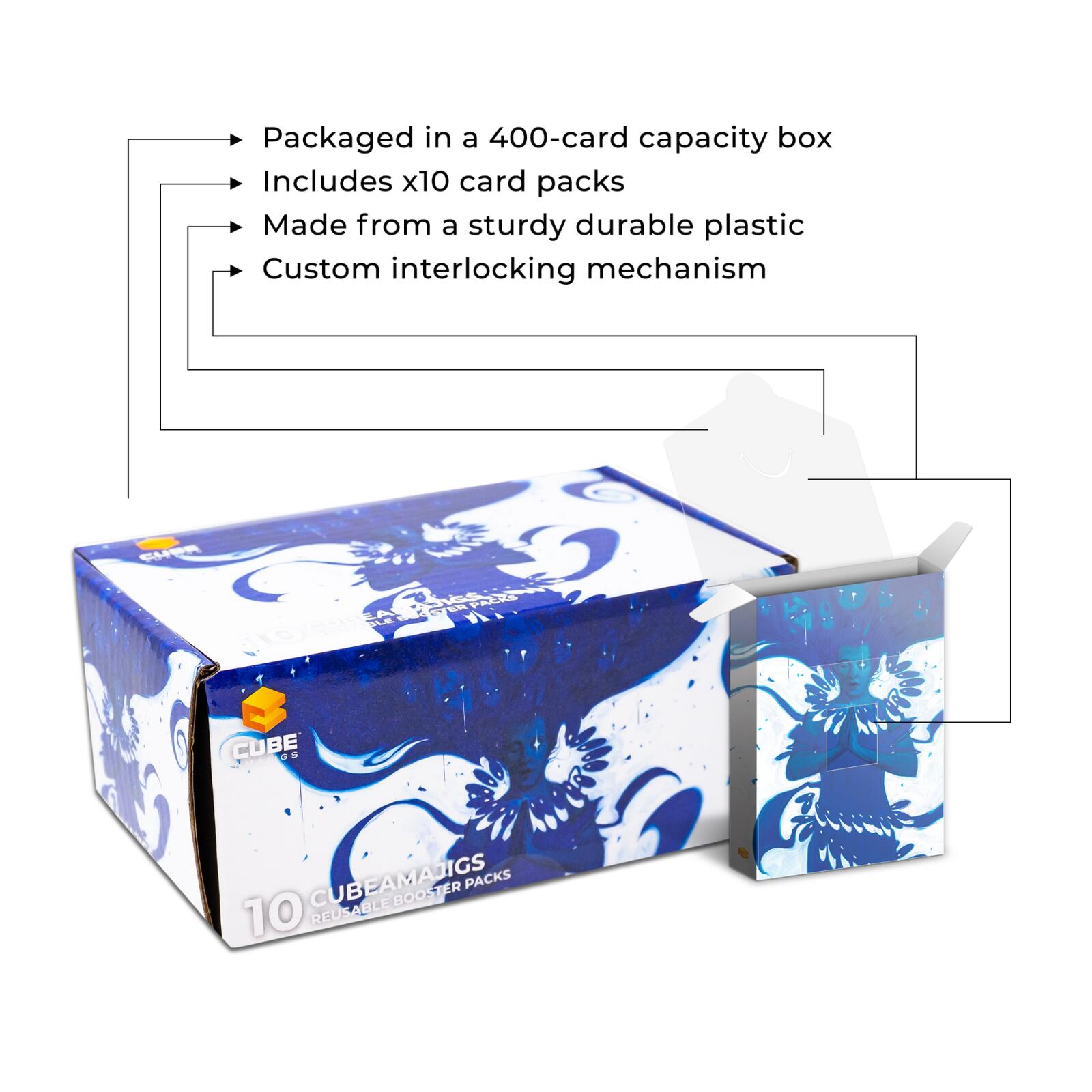 Cubeamajigs are reusable gaming packs that allow you to recreate the experience of opening a sealed pack of cards! They also serve as a great way to store a sideboard or cards together.