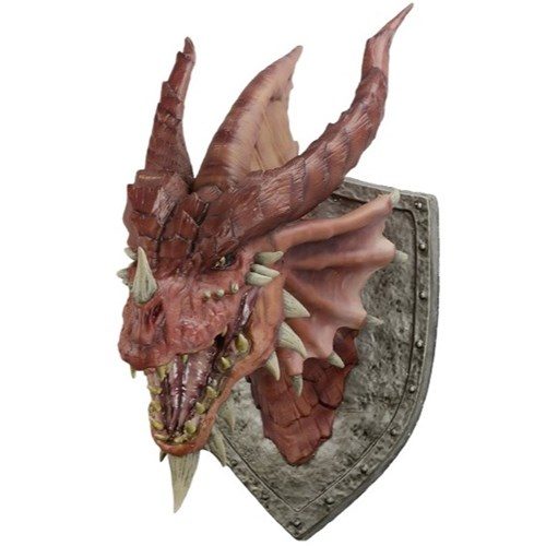 The red dragon plaque is made of foam rubber and latex that’s carefully hand-painted for realistic detail. The trophy plaque comes with everything you need to mount the plaque to your wall.
