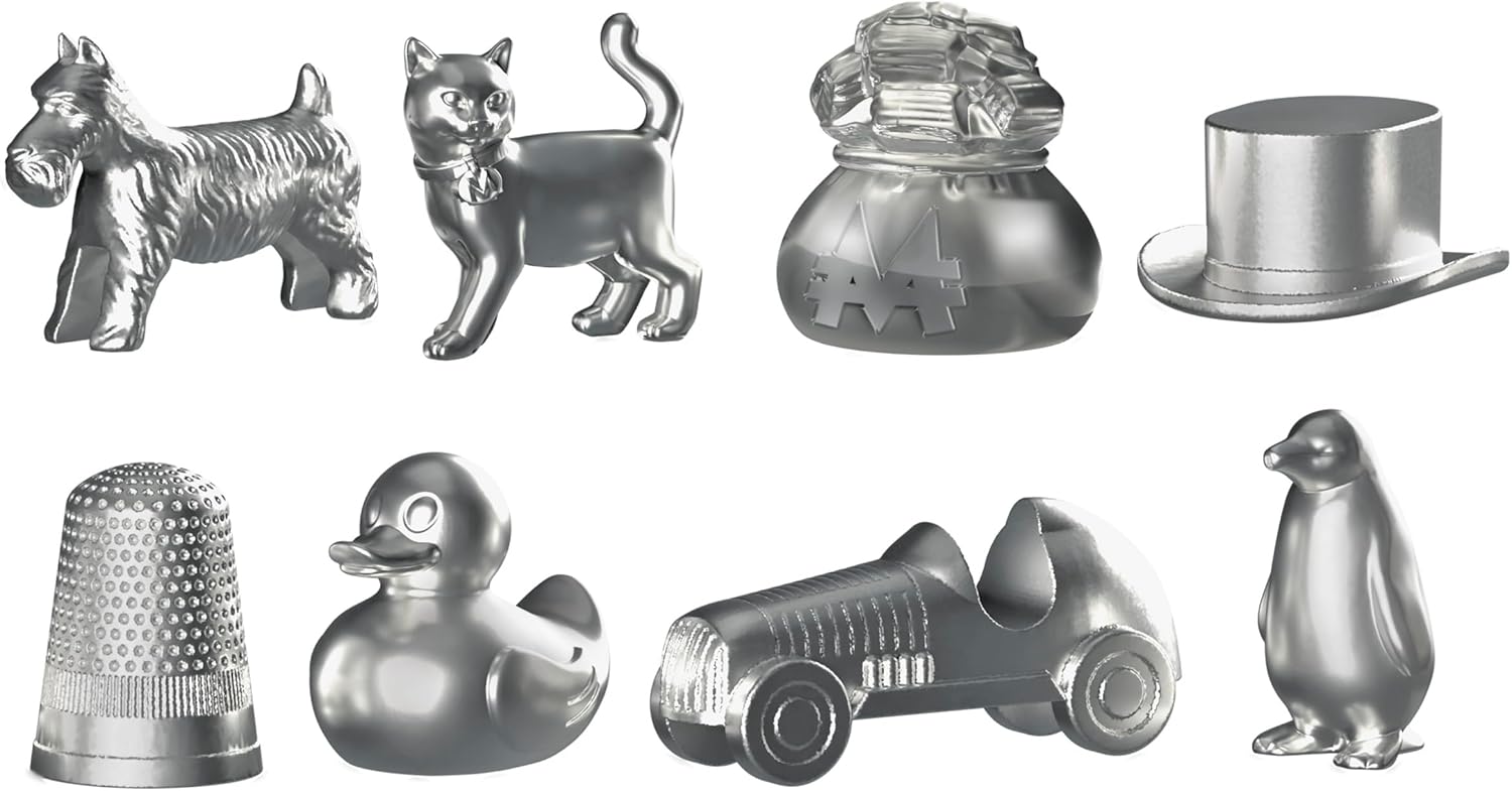 This version of the Monopoly game welcomes the Rubber Ducky, Tyrannosaurus Rex, and Penguin into its family of tokens. Choose your token, place it on GO! and roll the dice to own it all! Build houses and hotels on properties and change your fortune with Chance and Community Chest cards while avoiding Jail. There can be only one winner in the Monopoly game. Will it be you?