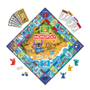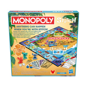 Create a perfect day with Stitch in the Monopoly Disney Stitch Edition game! In this edition, properties are replaced by Stitch’s favorite activities, such as Hula Show and Chillax, and beach rentals. First each player chooses a unique Stitch token. Then they move around the board, trying to claim as many activities and beach rentals as possible. The more players claim, the more exciting their day with Stitch will be and the more rent they’ll be able to collect from other players! Get a color set to add beach huts and lighthouses, and charge even more rent. Draw 626 and Ohana cards for game-changing actions. The last player in the game after everyone else has gone bankrupt wins! This strategy board game is a fun game for family time and it’s a great gift for kids ages 8 and up, teens, and adults who are fans of Stitch.