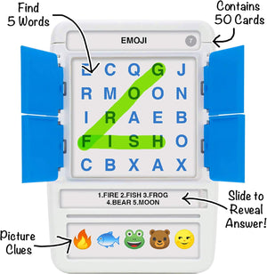 100 WORD SEARCHES TO PLAY. A fun and unique gadget filled with a range of colourful pictures to find - animals, emojis, characters, food and lots more.