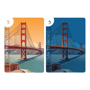 Each city comes in two types: day and night. Day city cards are played face up on the table for all to see. Night city cards are played face down and only the player that played the card and whoever it is in front of can see. At the end of the game, players will earn points for majority control in a city and sets of cities collected.