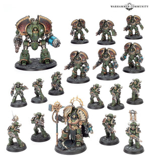 This box comprises 1,207 plastic components, 41 x Citadel 32mm Round Bases, 7 x Citadel 50mm Round Bases, 1 x Citadel 100mm Round Base, and 1 x Warhammer: Horus Heresy Transfer Sheet containing 1172 high-quality waterslide transfers – featuring Legion iconography for the Iron Warriors and Salamanders – to decorate your miniatures.
