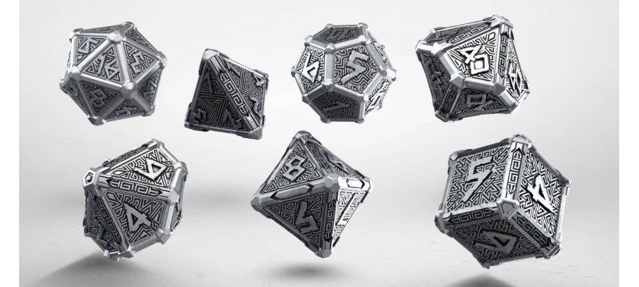 Q Workshop - Metal Mythical RPG Dice Set - Silver/Black