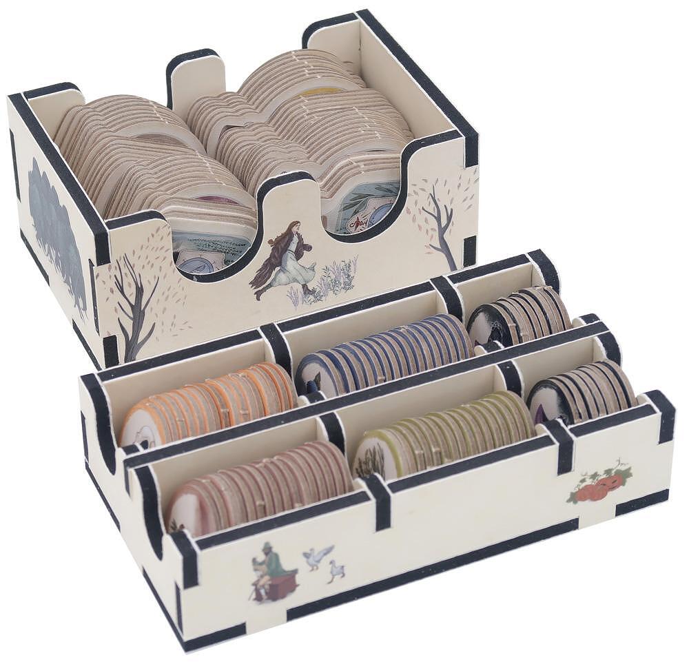 Official full colour insert compatible with Septima®, including the Shapeshifting & Omens® expansion. The design provides both efficient storage and improved game play. Many of the trays can be utilised during the game, and they greatly aid set-up and clear-away times. The rules and boards act as a lid on top of the trays.