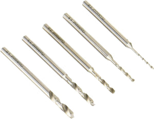 Constructed from special tool steel, this set suits pin vises accepting drill bits with 2.5 to 3.2mm axis. Avoid lateral force in operation, as it may break the tapered portion of the drill bit.