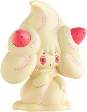 Evolving from a Milcery holding a sweet when its trainer spins and strikes a pose, the extra sweet Alcremie packs a surprising punch from behind its sugary first impression!