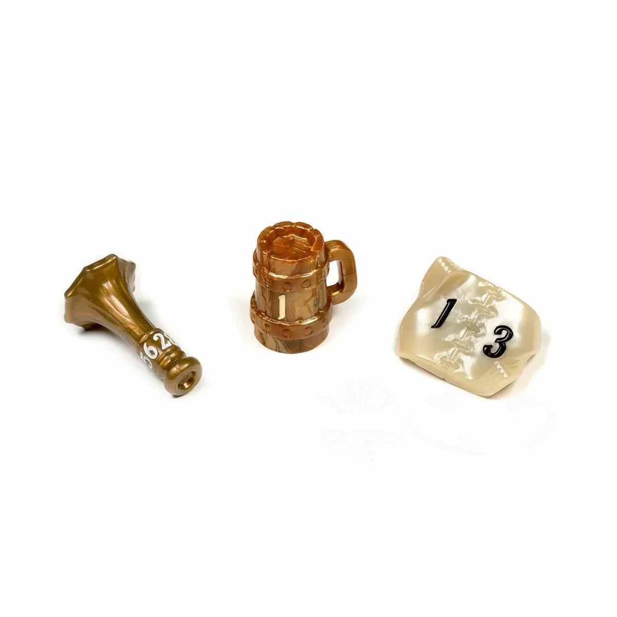 You can find 3 dice in this amazing set; one d2 Stein, one d4 Sheet Music, and one d8 Horn.