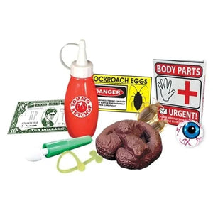 If you want to lay some dog poo next to your toilet, hide an eyeball where it can cause a crazy response or make dead body parts come to life, this set is for you. It includes an appearing spider box, dog poo, a magic snapper, floating eyeball, body parts box, cockroaches, snotty snot and more!
