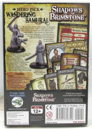 Meant as a preview of their second Kickstarter, Shadows of Brimstone: Forbidden Fortress, this hero was part of the Kickstarter for the original game. Comes with male and female Wandering Samurai models along with rules, gear cards, ability cards, and skill trees.