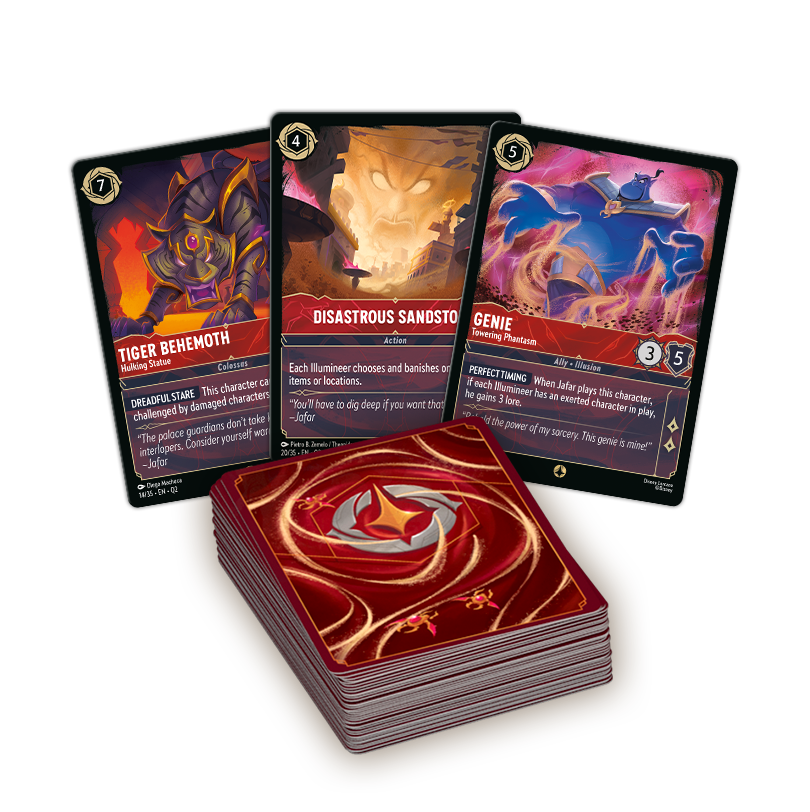 A Jafar glimmer has taken over Archazia’s Island, corrupting the beautiful haven into his menacing fortress. His reign may be the greatest threat Lorcana has faced! With 200+ cards to collect, newcomers to the game and seasoned players will uncover more dual-ink cards, illusions, and so much more.