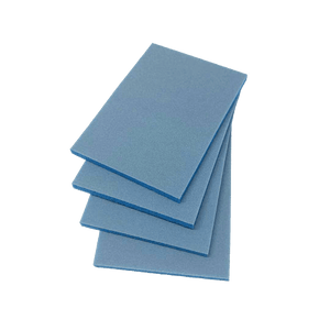A set of four fine sanding pads (400 grit) by Ak Interactive Tools. These sanding sponges are super flexible and resist jamming. They fold and adapt without breaking for comfortable sanding. This set includes four units, color-coded—blue—to indicate the 400 grit grade.