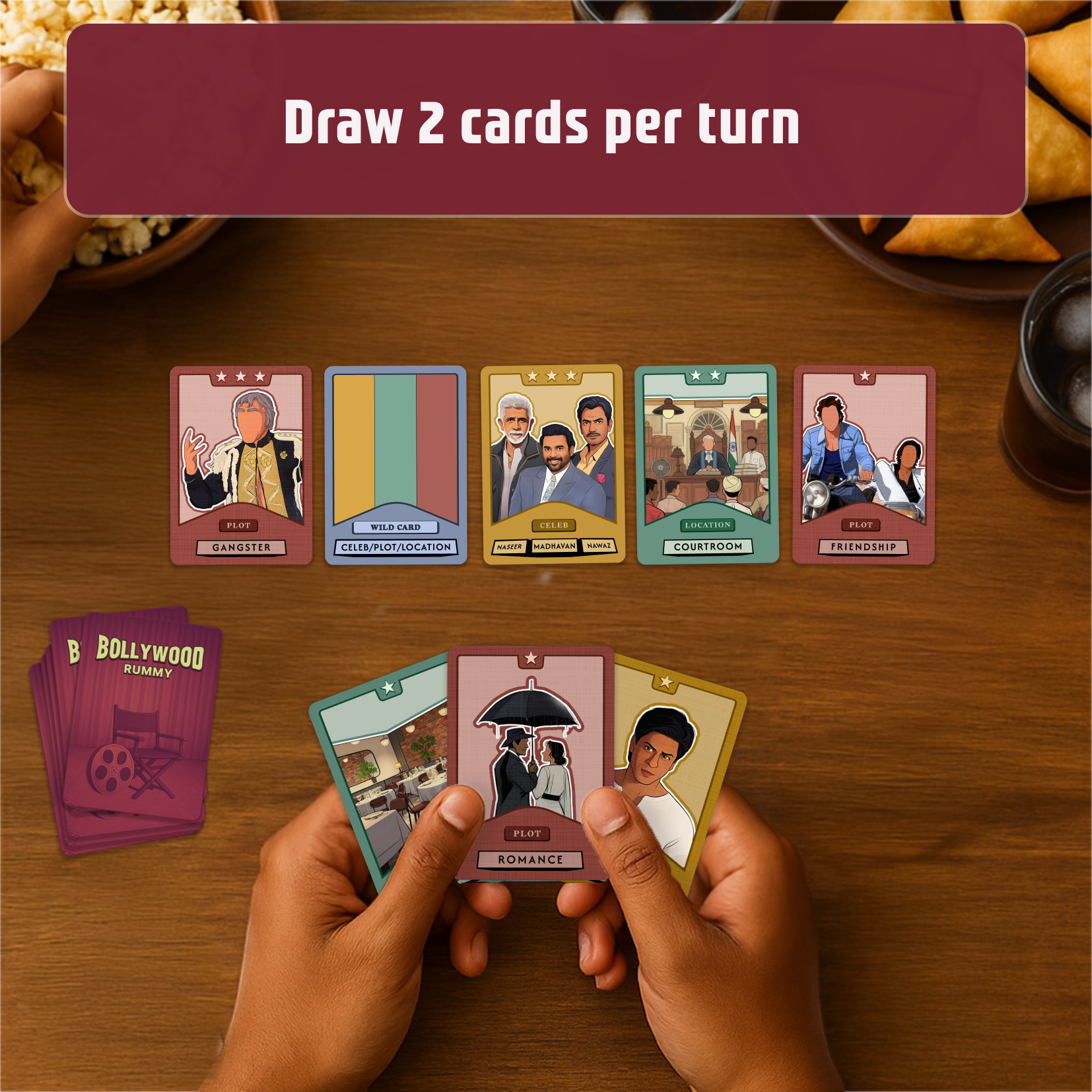 Think rummy, but make it Bollywood — quick to learn, full of laughs, and endlessly creative!