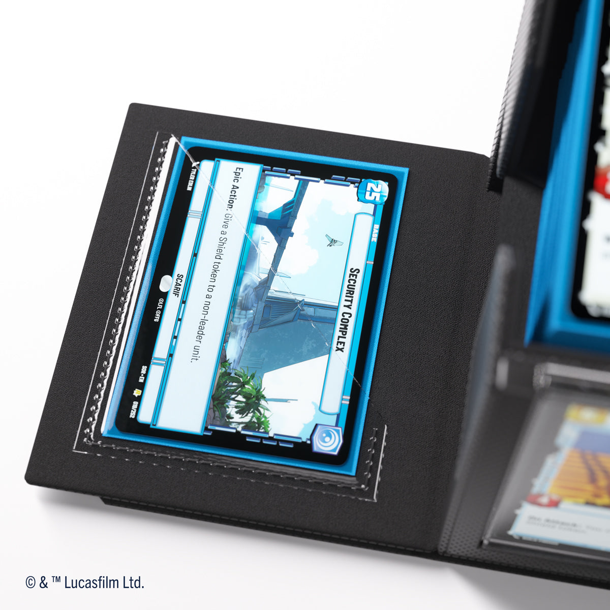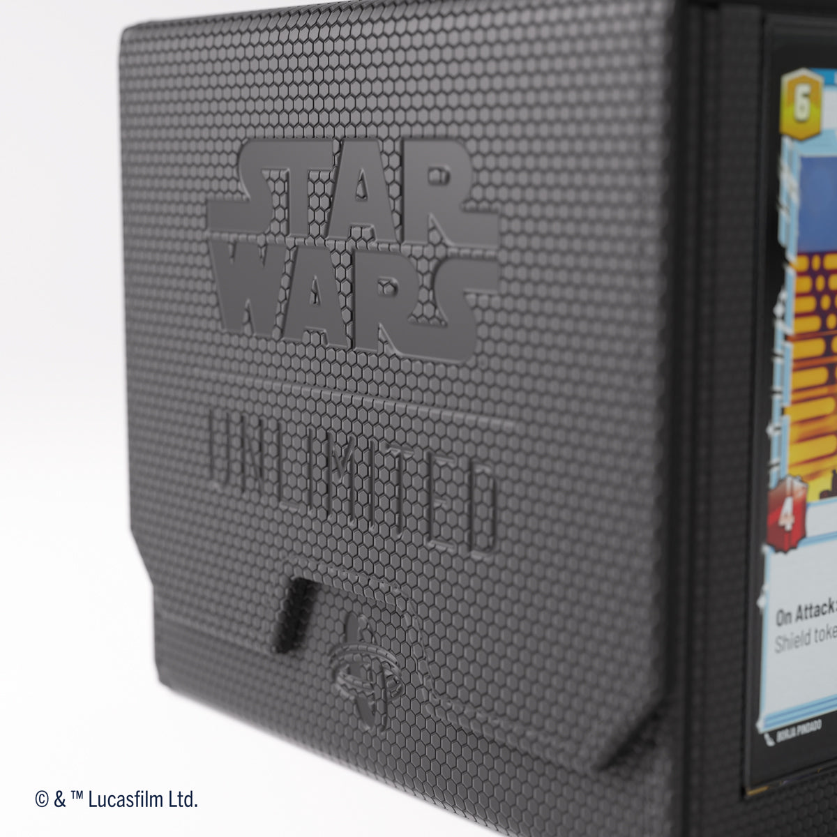 The Double Deck Pod, an officially licensed premium deck box, is specifically designed for the needs of Star Wars™: Unlimited players. Unique Feature: The Double Deck Pod includes 2 Slide Card Cases with additional UV protection for keeping the leader cards. Due to the innovative placement of that cards, the stored decks can be easily identified without opening the box. The Slide Card Cases can also be detached and used during gameplay. Decks and bases are on opposing sides, making the Double Deck Pod the perfect 2-player-solution.