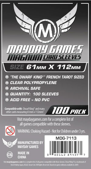 Protect your 61 x 112 mm cards in style with the Mayday Magnum Platinum Card Sleeve featuring the "Dwarf King" design from the French Tarot series. Crafted for durability and clarity, these sleeves preserve your cards against wear, moisture, and dirt, ensuring your deck remains pristine during every game or reading. Perfect for collectors and serious players seeking reliable protection combined with unique artistry.