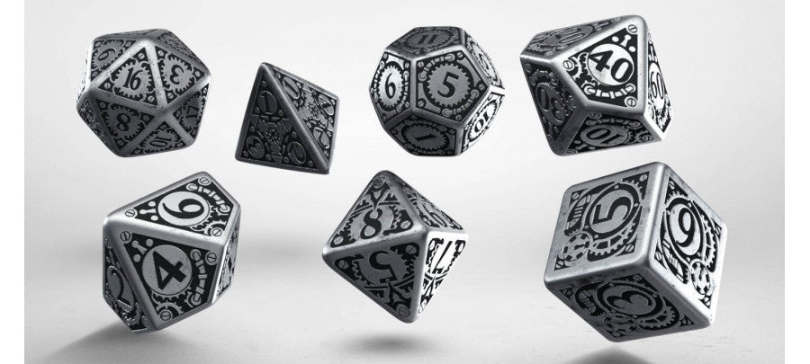 This box contains a set of 7 finest polyhedral dice with unique Q-workshop designs crafted in metal.