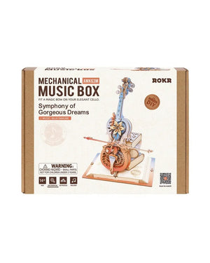 The ROKR Magic Cello Symphony of Gorgeous Dreams AMK63M is a wooden construction kit that combines music, movement, and art in a single enchanting model. This unique music box depicts an elegant cello resting gracefully atop a stack of magical books, finished with beautiful color gradients that give it a dreamy feel.