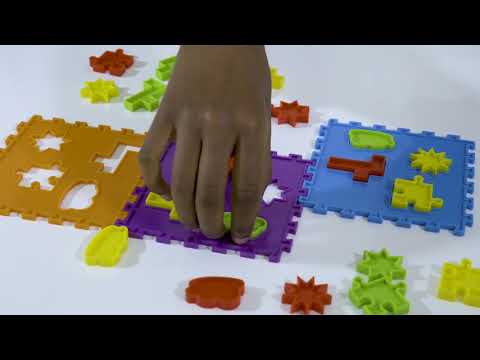 There are 60 graded challenges, each chosen randomly. Everyone sees the same image at the same time, and must recreate the image first to win the round. Both players (or teams) have six tiles, each with four shape holes and 24 shapes with which to fill the holes. Unfortunately, each tile can go either way up and rotate, there are numerous pieces that could fill each hole, but won't. And it's that easy - it's just shape sorting gone extreme!